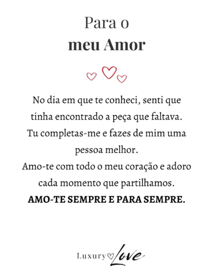 A Luxury Love oferece-lhe a oportunidade de enviar as suas jóias numa elegante caixa de oferta para o seu namorado. A nossa caixa de oferta, com o seu design requintado e materiais de primeira qualidade, é o complemento perfeito para tornar este presente ainda mais especial e memorável para ele.